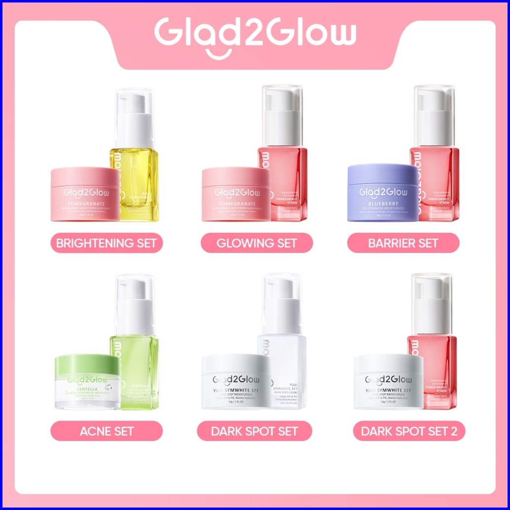 Glad2glow 2pcs Skincare Paket- Moisturizer Serum-beauty Sets Packages Mencerahkan Warna Kulit Menghilangkan Jerawat Peng