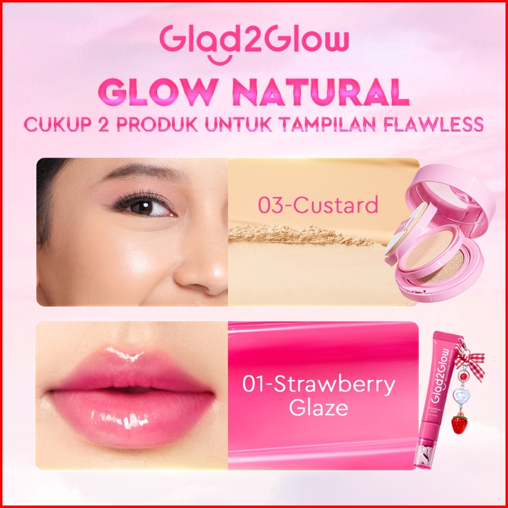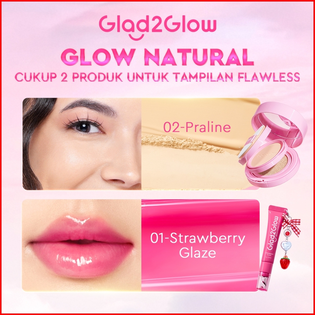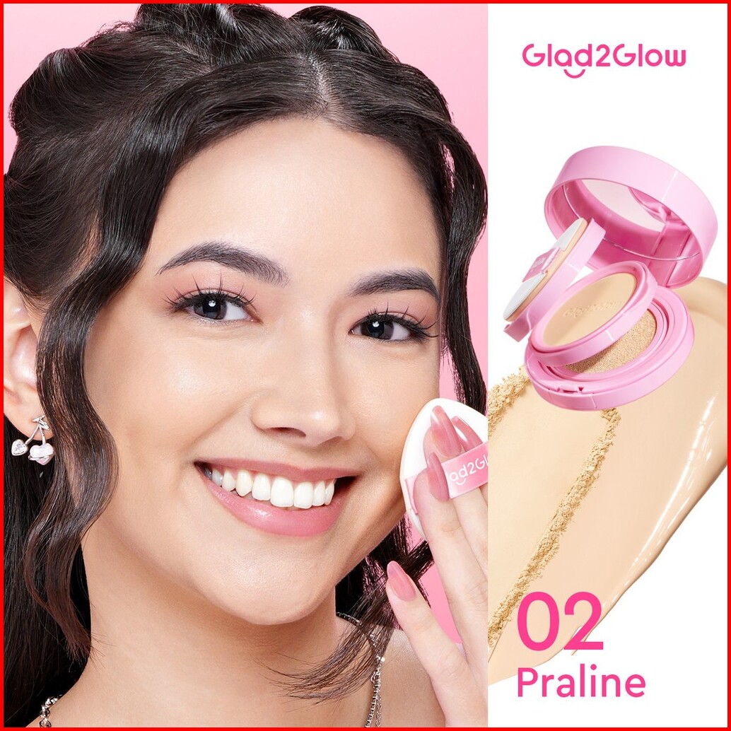 Glad2glow 2in1 Perfect Pair Cushion Powder Foundation Lip Serum Waterproof Make Up Setting Bb Cream Concealer Foundation