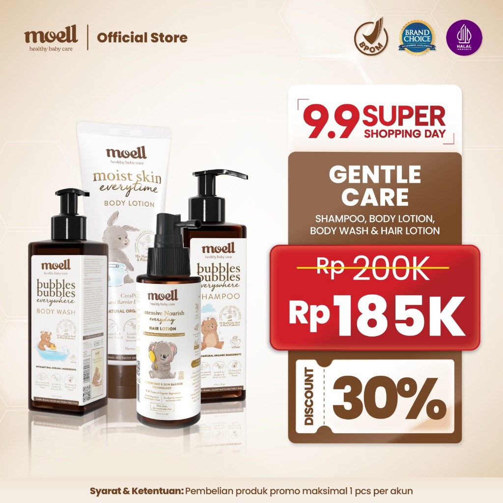 Moell Gentle Care Body Wash 185gr & Body Lotion 185gr & Shampoo 185gr & Hair Lotion 100gr ASLI BPOM BEST SELLER