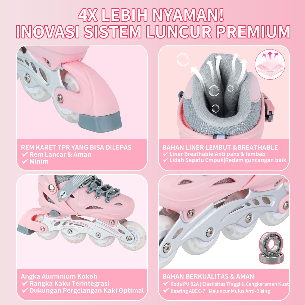IXCE Sepatu Roda Anak Adjustable - Lampu LED, Bisa Diatur Ukuran 28-32 (FREE Tas)