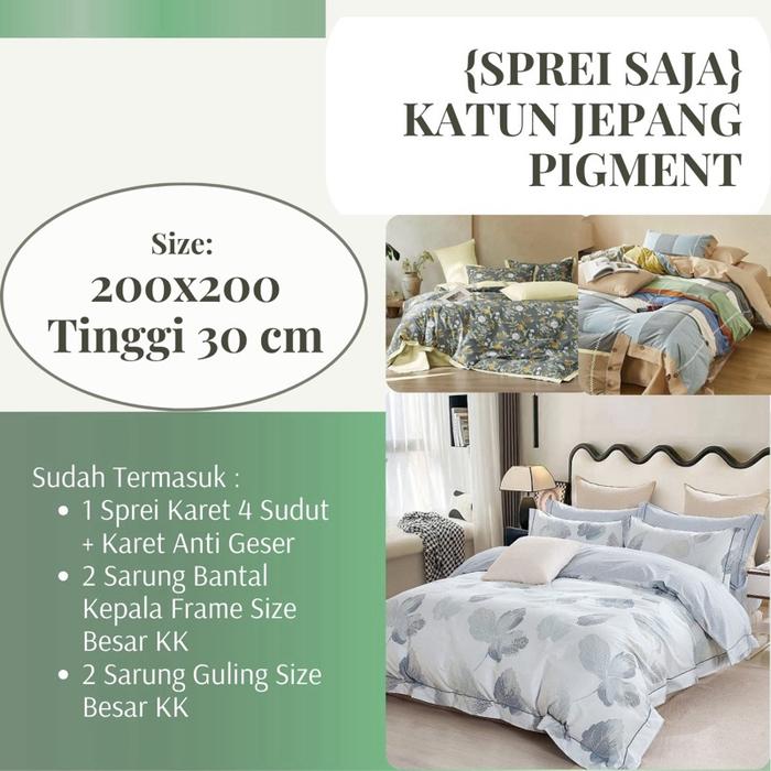 Sprei Saja KATUN JEPANG 200x200 Tinggi 30cm 100% Cotton Original Bantal Guling Karet Sarung Tali