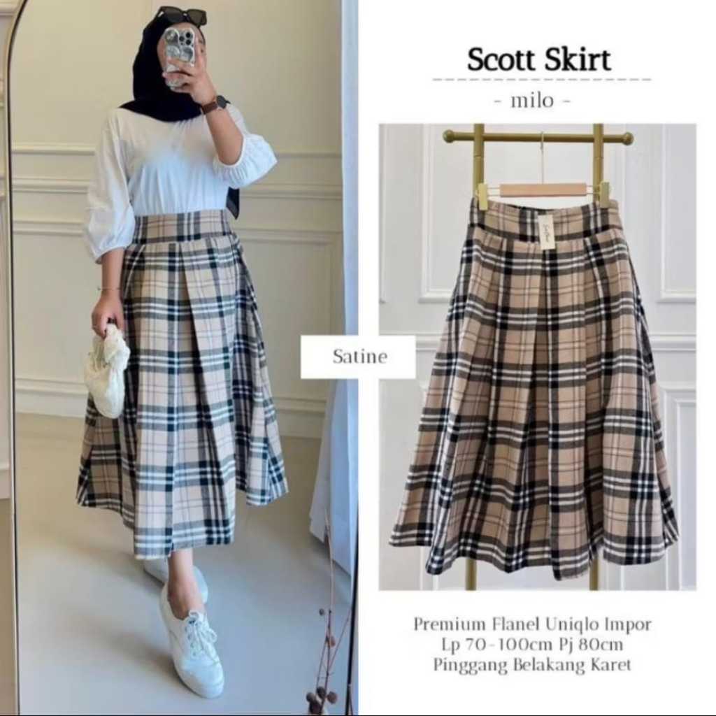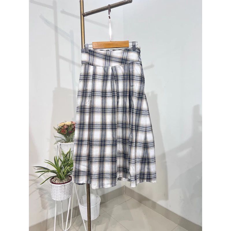 Rok Midi Flanel 7/8 || Rok Midi Flanel Kotak Import 7/8