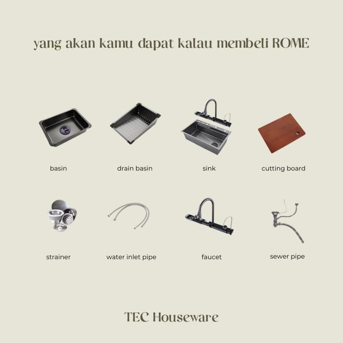 Promo TECROME Kitchen Sink Luxury Stainless Steel 304 Matte Grey Rainfall Set Wastafel dapur