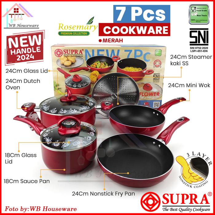 Promo Wajan SUPRA 7Pcs Merah New Handle Panci Set anti lengket /cookware set wajan penggorengan