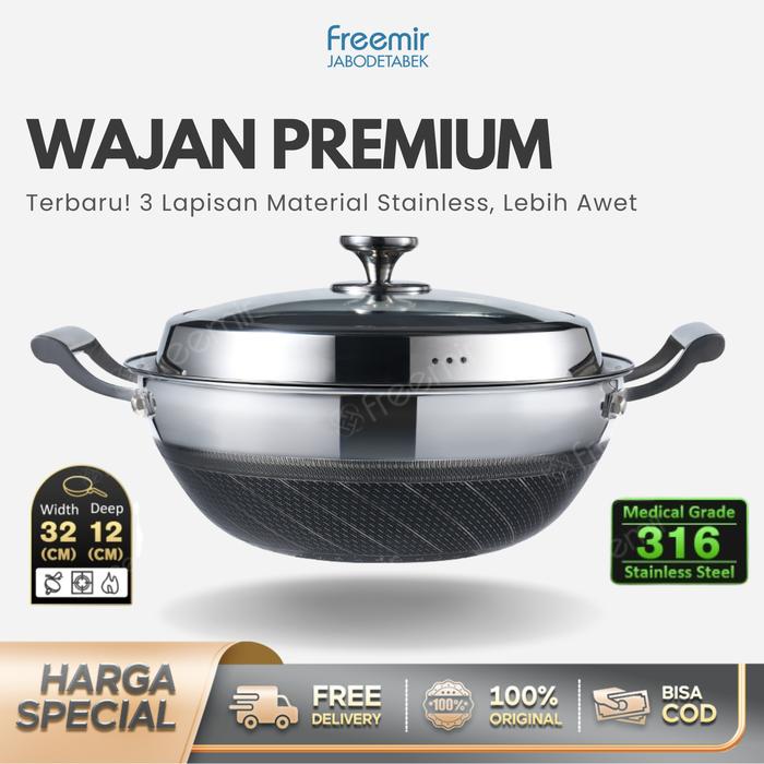 Promo Wajan MEGA freemir Wajan PREMIUM Jumbo Honeycomb 3D Stainless SUS 316 Kapasitas 7 L Wajan Anti