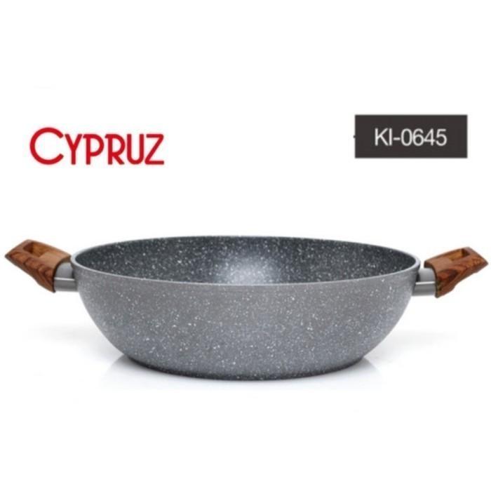 Wajan PANCI CYPRUZ KUALI GREY MARBLE SERIES 30cm KL-0645 Tanpa Tutup - ANTI GORES ANTI LENGKET