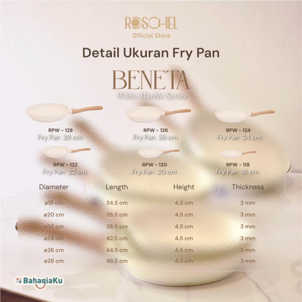 Roschel Beneta White Marble Coating Non-Stick Frypan 18 , 20 , 22 , 24 , 26 , 28 cm Panci Wajan Penggorengan Fry Pan Ant