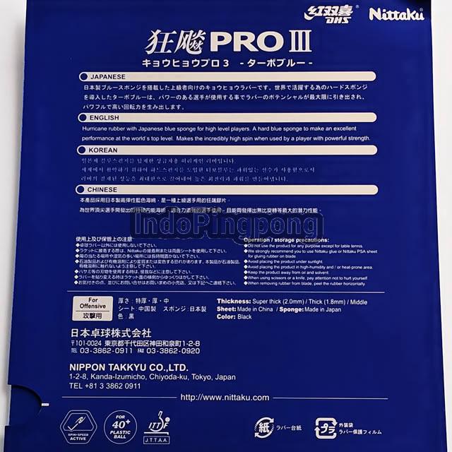 Karet Bat Pingpong Nittaku Hurricane Pro III Turbo Blue Orange DHS H3 3