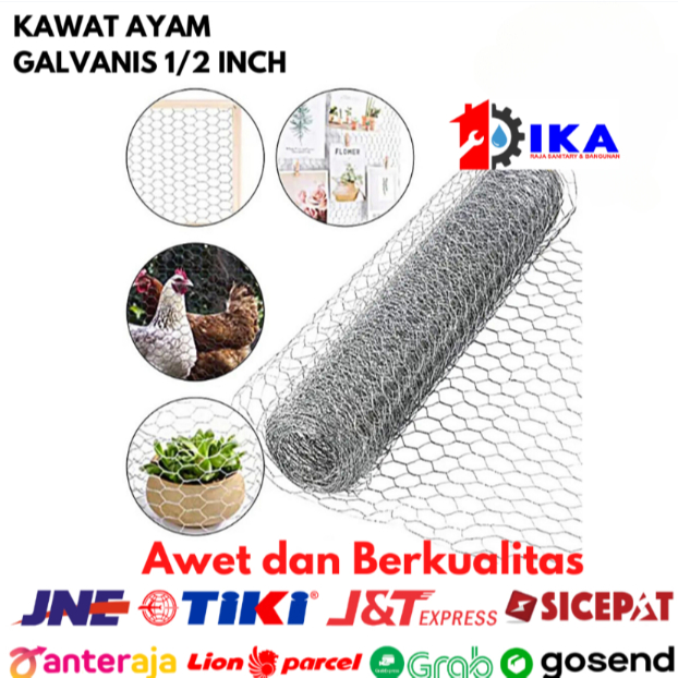 Kawat Ayam Kandang Taman Galvanis Hexagonal Chicken Wire Mess 1/2inch Kawat Ayam Galvanized / Chicken Wire Mesh 1/2" Pan