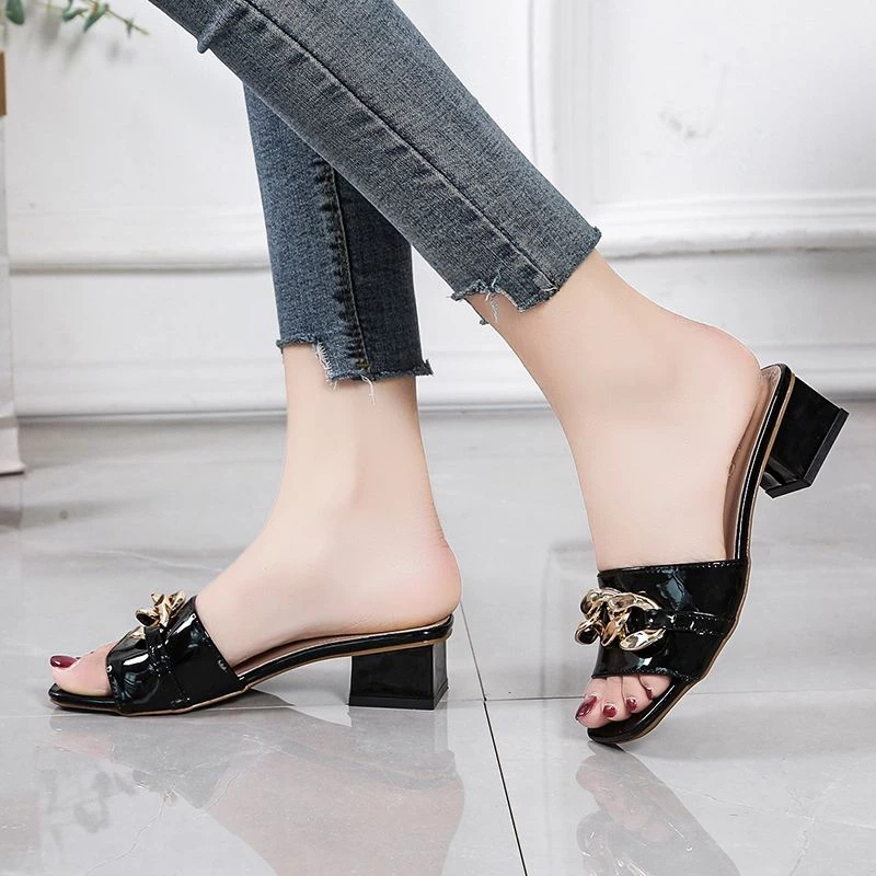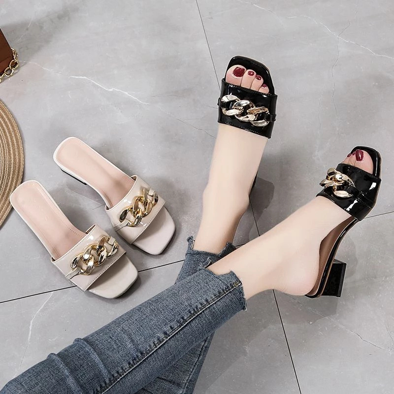 ZEIN SENDAL MURAH DISKON HEELS HAK 3CM AKSEN RANTAI KEKINIAN