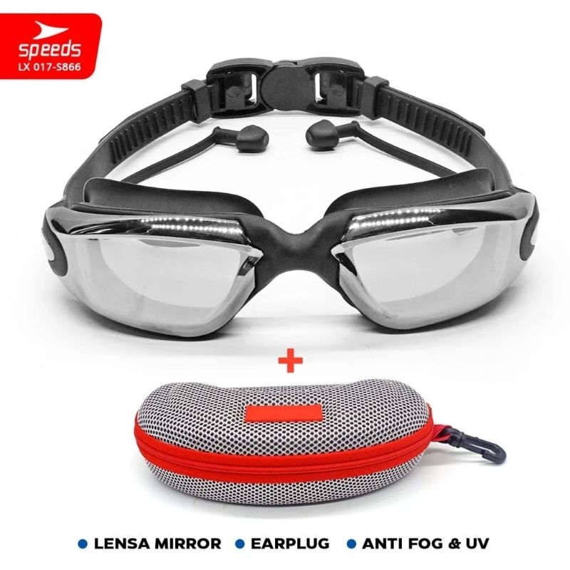 Kacamata renang dewasa Lensa Miror + penutup telinga anti UV