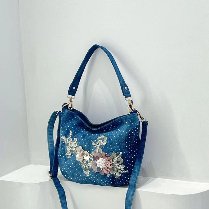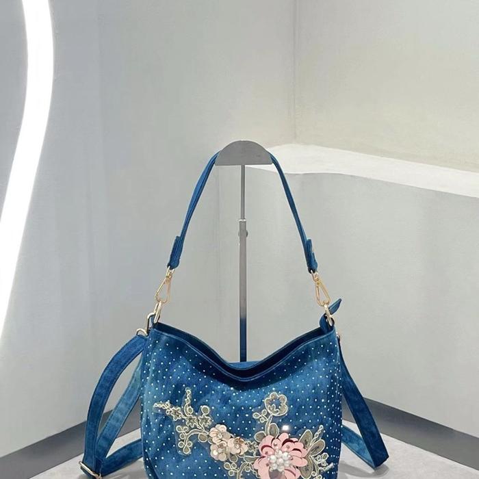 81976 JEANS BUNGA tas selempang wanita cantik dan elegan tas jeans wanita premium dengan bunga