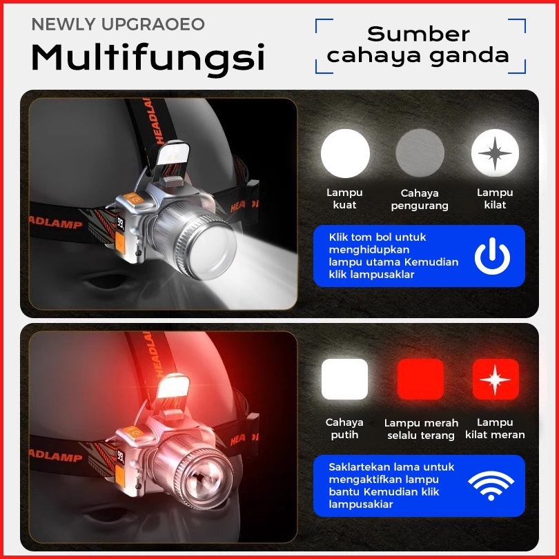 Codsenter Kepala Cahaya Maksimal Plus Rechargepro Usb-c 15w 1300lumen 1500lumen Penyebaran Zoom