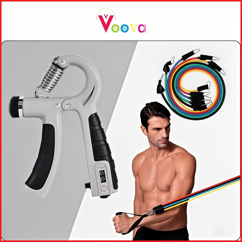 Voova Set Handgrip Dengan Resistance Band Set Alat Olahraga Tali Pegas Olahraga Tangan Alat Olahraga Tangan