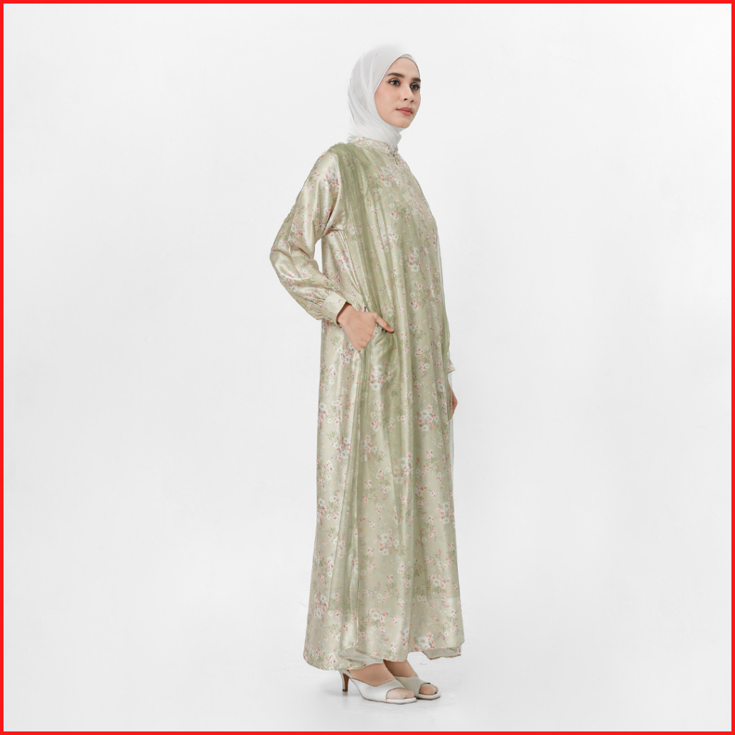 Gamis Satin Silk Kombinasi Tulle Gamis Busui Friendly Dress Raya Wanita Gamis Armany Motif