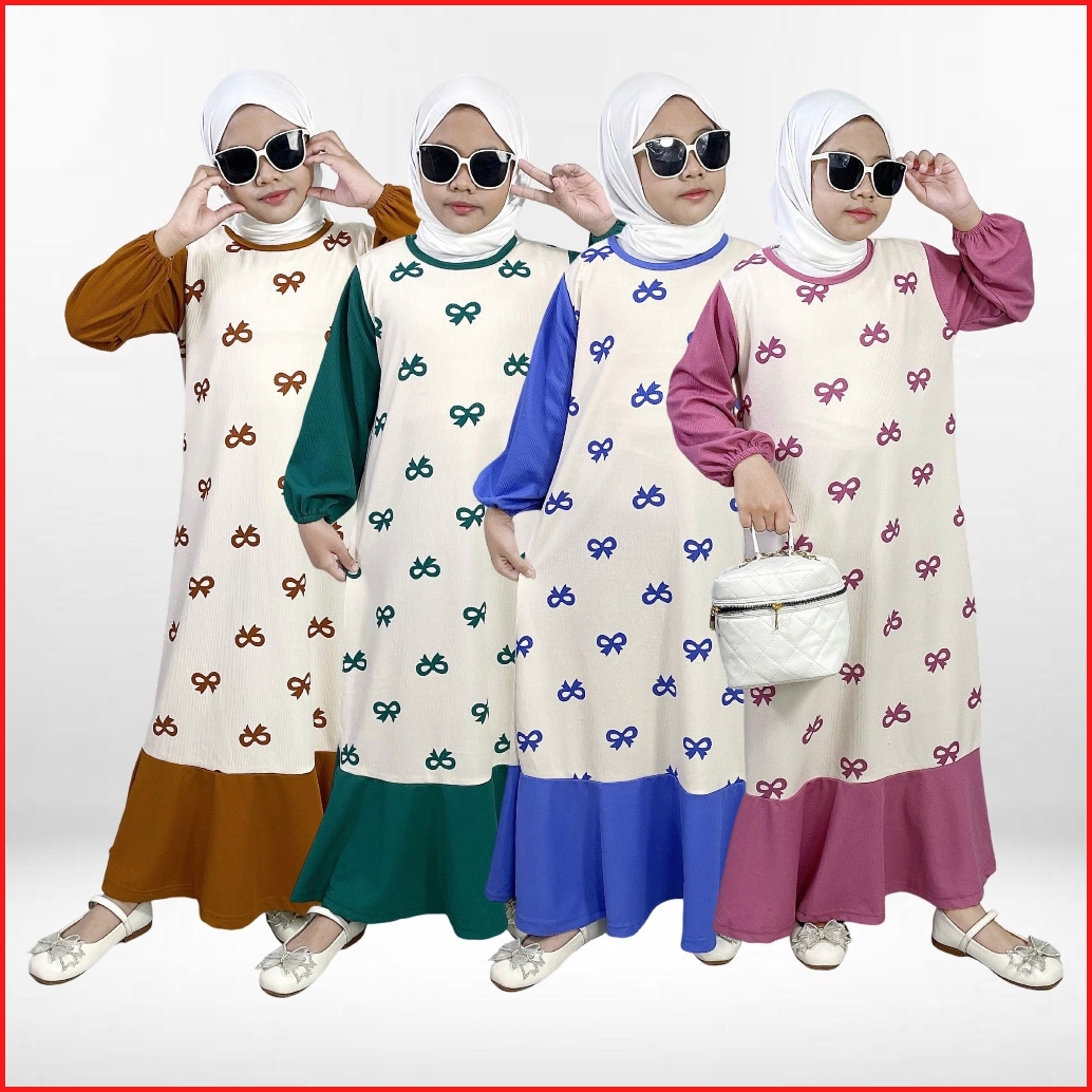 Gogofashion 830 Gamis Anak Sofia Bahan Soft Knit Motif Pita