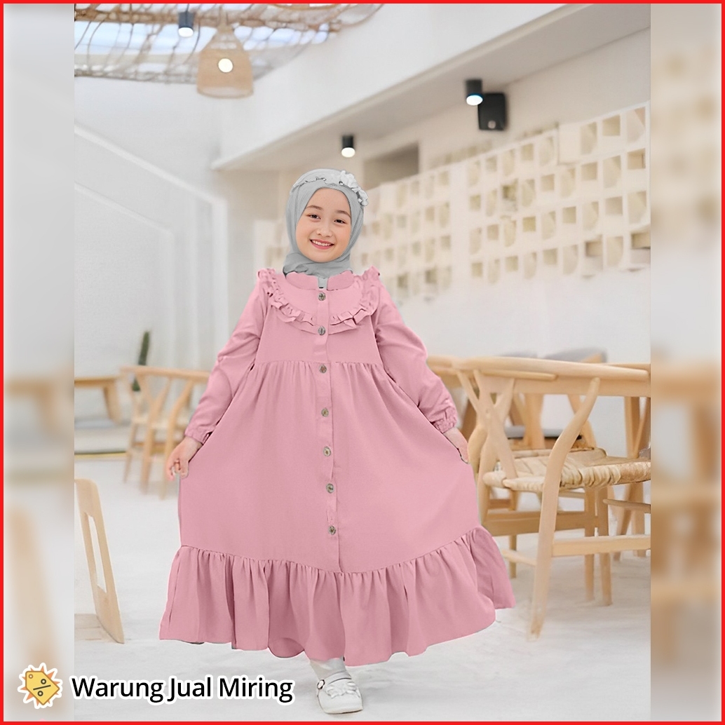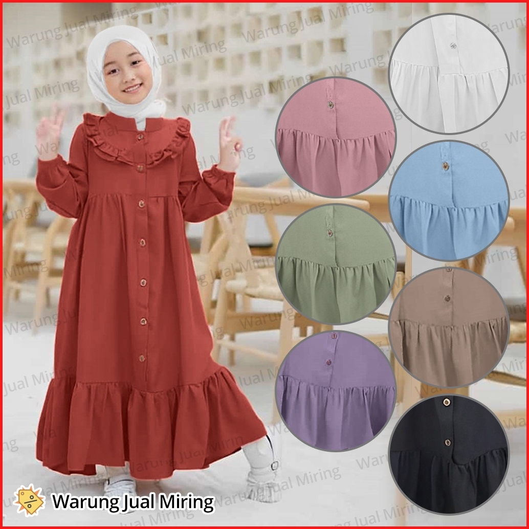 Baju Gamis Anak Perempuan Crinkle Muslim Korean Style Putih Hitam Teracotta Pink Bata Dress Cewek Remaja Harian Polos Wa