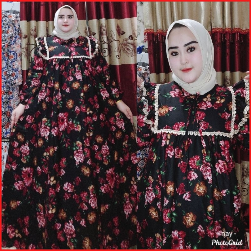 Gamis Alisya Premium Aksen Renda Rumbai Sampai Belakang