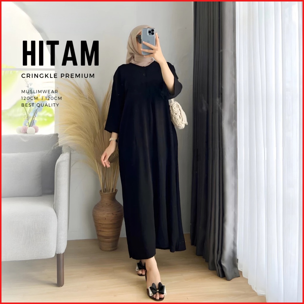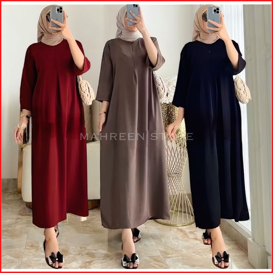Zea Long Dress Tangan 3 4 Airflow Cringkle Busui Daster Gamis Panjang