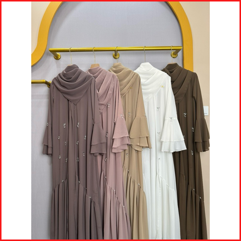 Dfm - Zaina Abaya Set Hijab Segiempat Gamis Abaya Wanita Terbaru Bahan Ceruty Armany Baby Doll Full Puring