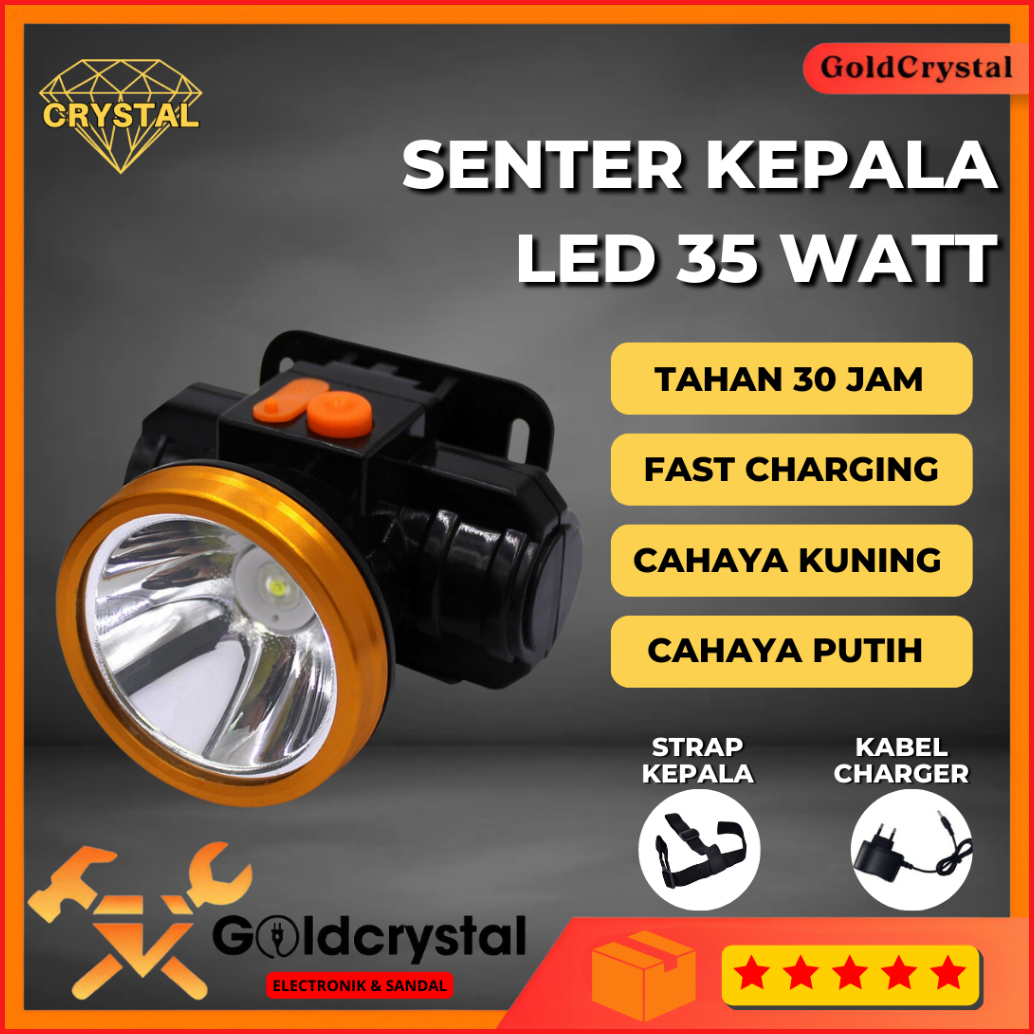 Lampu Senter Kepala Led 35 Watt Headlamp Battery Lithium Lampu Gunung Camping Hiking Senter Camping