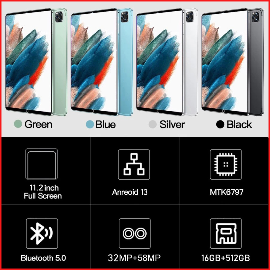 2024 Tablet Pc Tab Pro11 Android 12gb 512gb 11 6 Inci Layar Penuh Layar Besar Wifi 5g Dual Sim Dual Standby Tablet Anak-