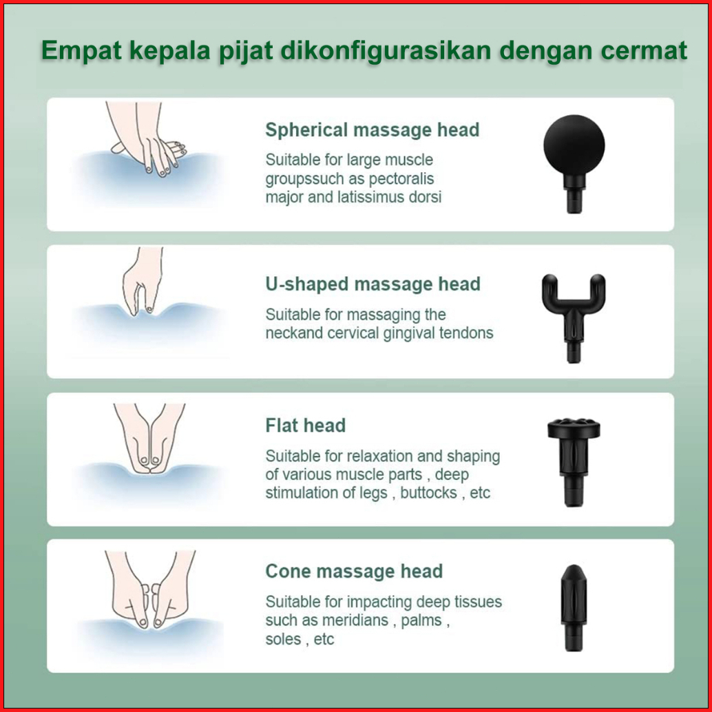 Pijat Otot Mini Elektrik Genggam Massager 4in1 Dengan Banyak Kepala Pijat