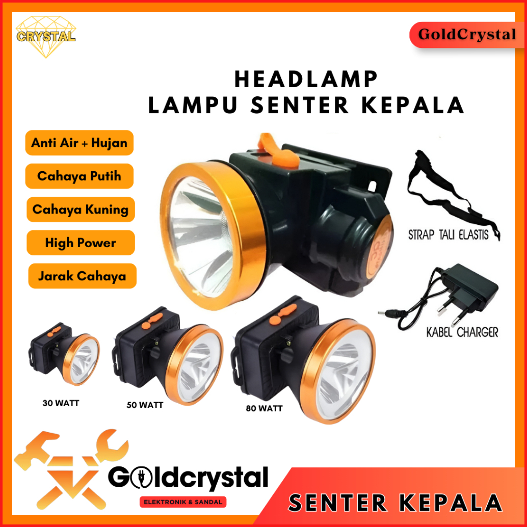 Lampu Senter Kepala Led 50 Watt Headlamp Battery Lithium Lampu Gunung Camping Hiking Senter Camping