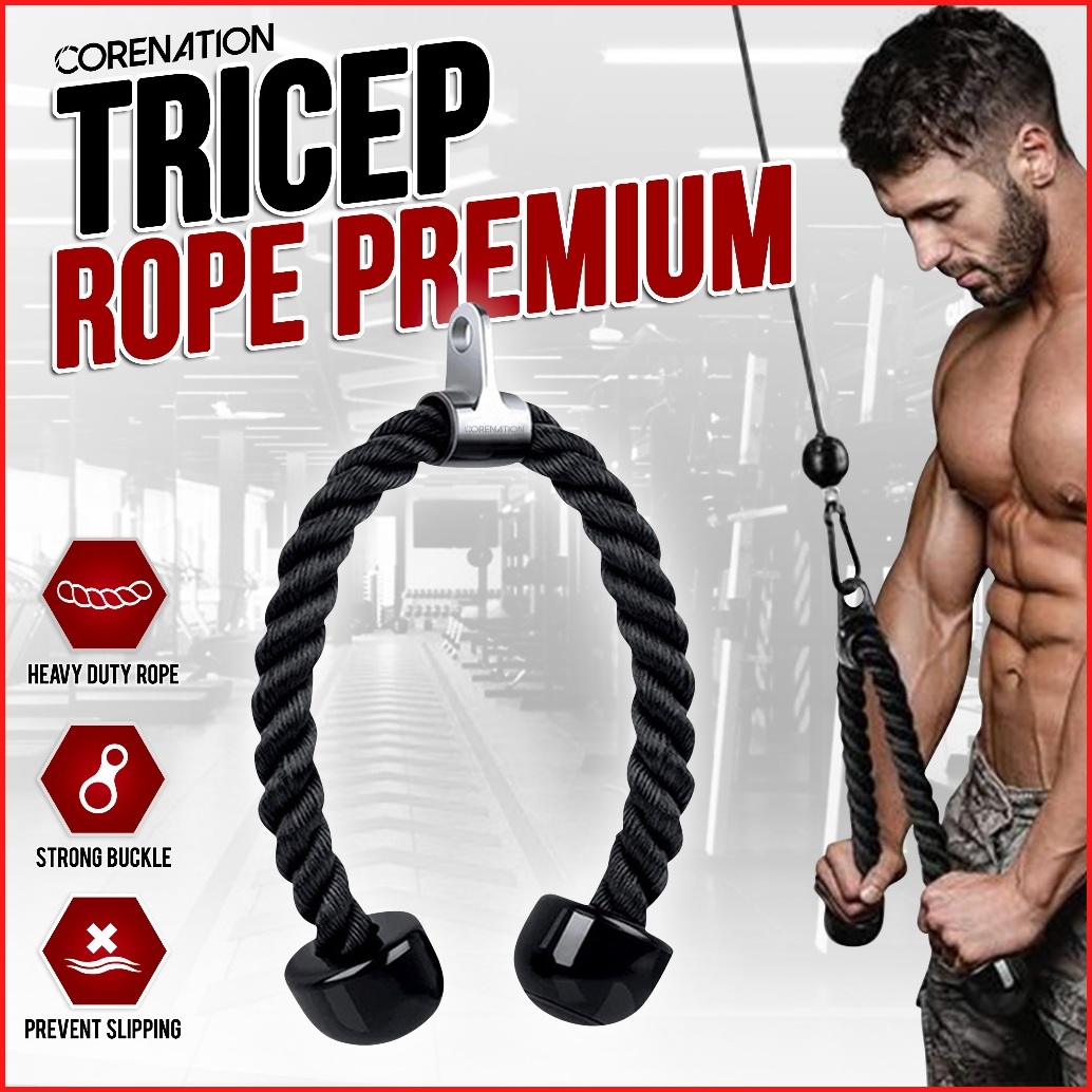 Corenation Gym Handle Tricep Rope - Triceps Ropes Cable Attachment Latihan Otot Trisep Katrol Olahraga Gym Fitness Pulle