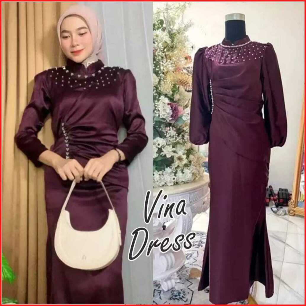By Sereia Vina Dress Spesial Burgundy Dress Lebaran Viral Duyung Baju Wanita Kekinian Lebaran 2025