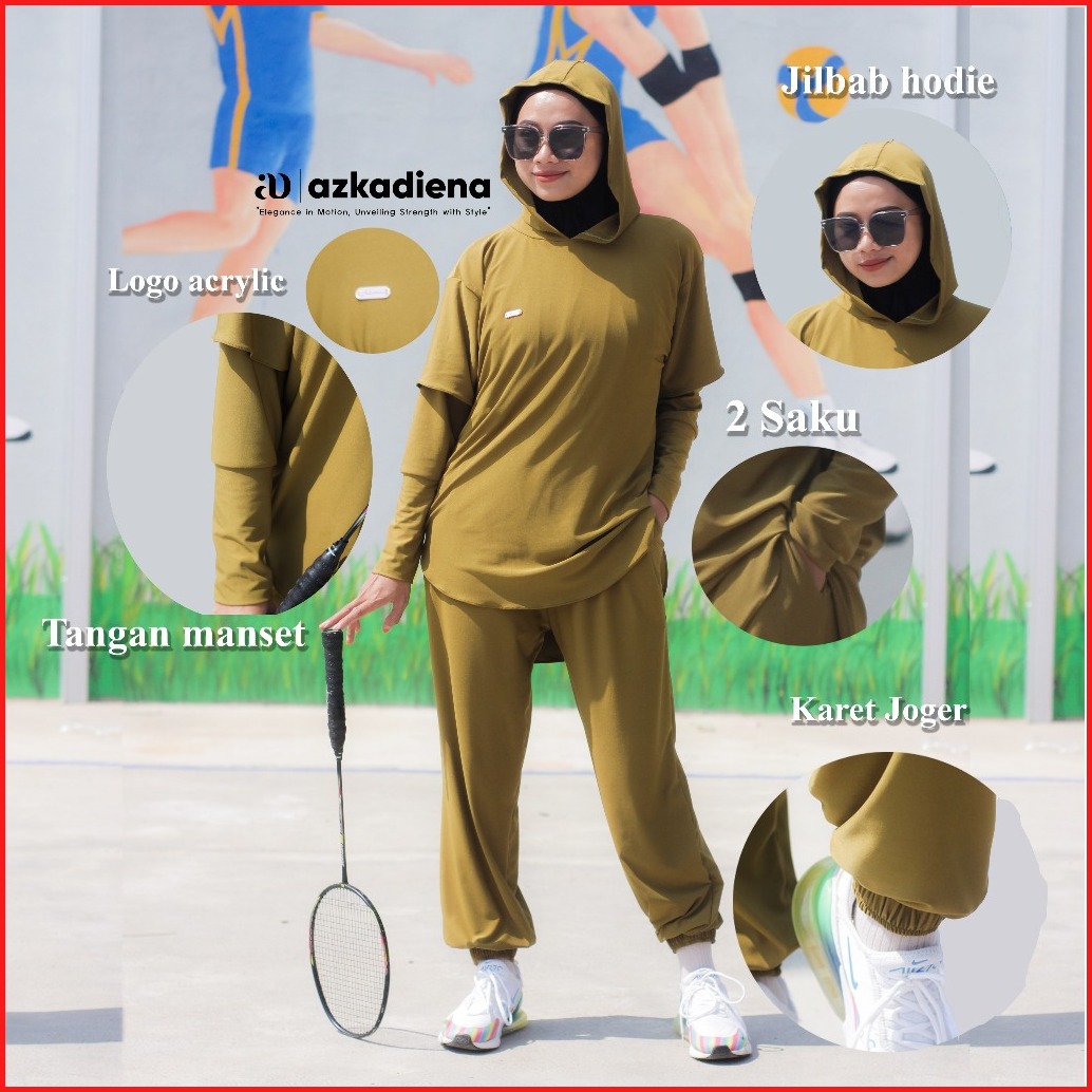 Azkadiena Setelan Jenita Set Baju Olahraga Wanita Muslimah Set Sport