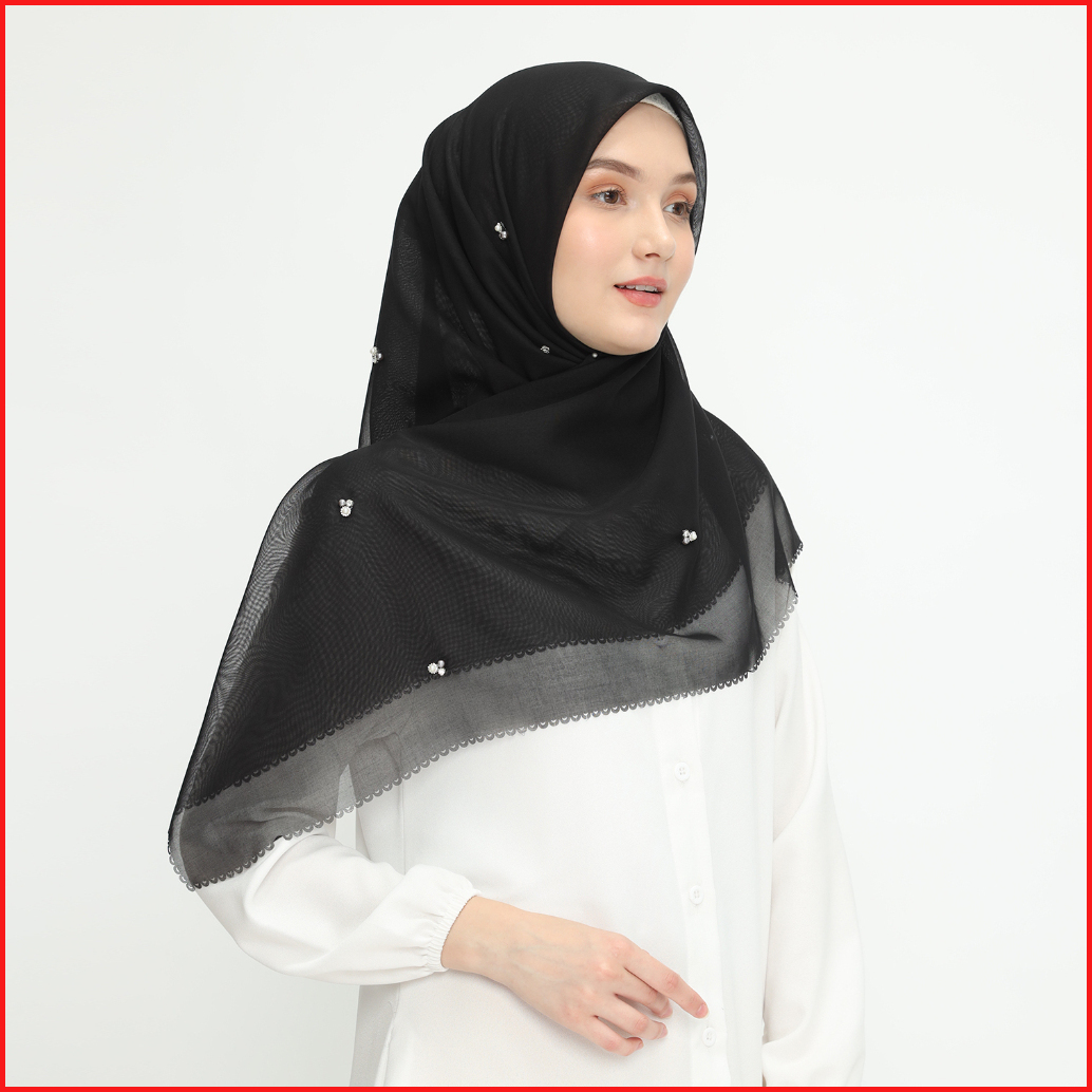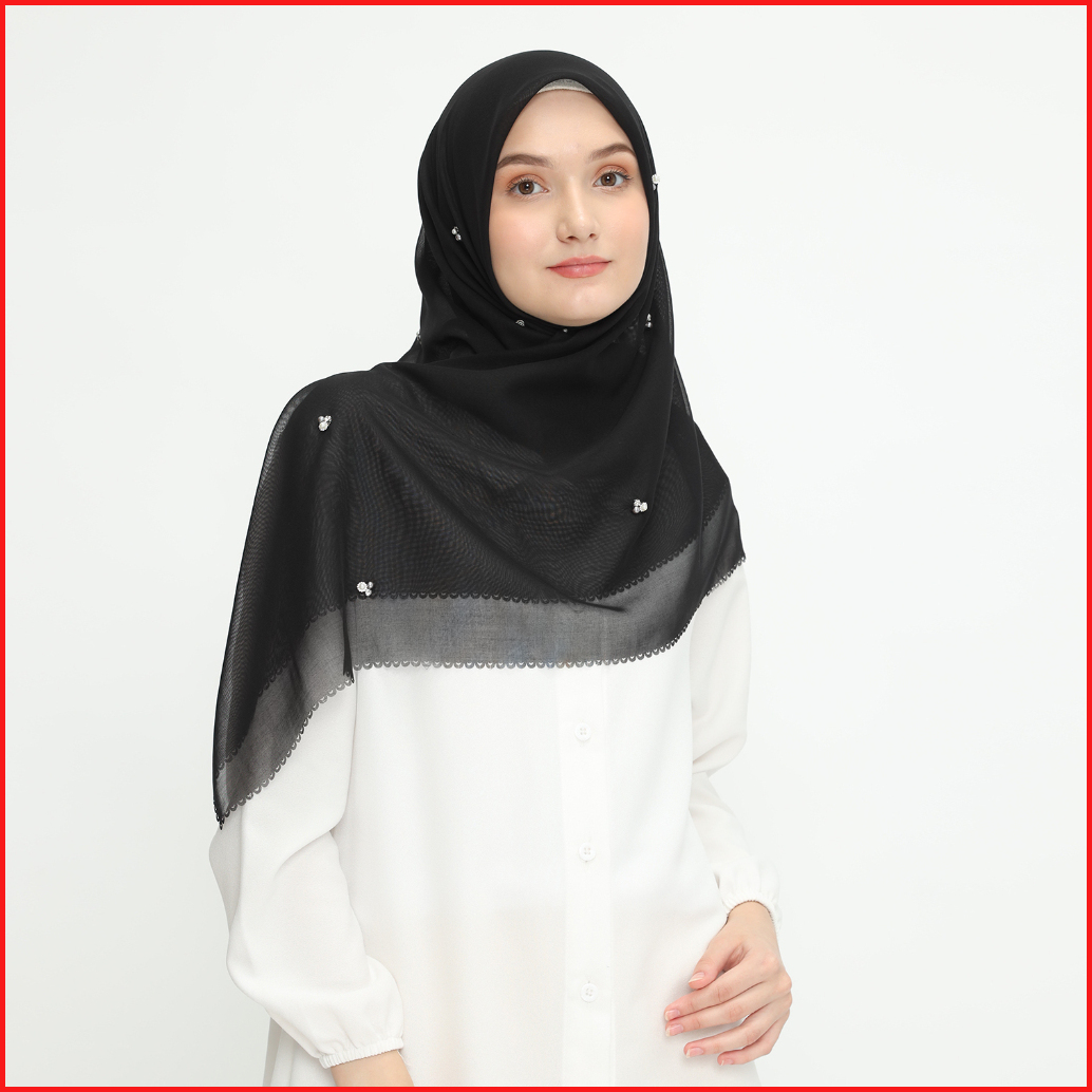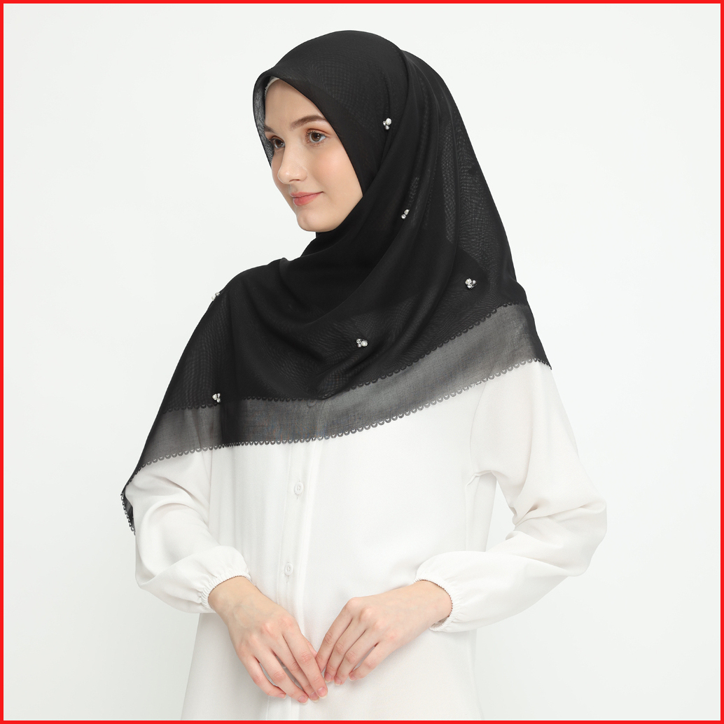 Hijab Jilbab Payet Bahan Paris Japan Ori Premium Lasercut Black Hitam