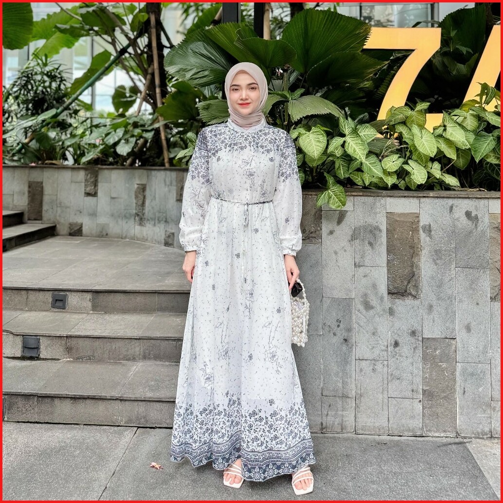 Fanmu Gamis Putih Kondangan Premium Dress Floral Muslim Wanita