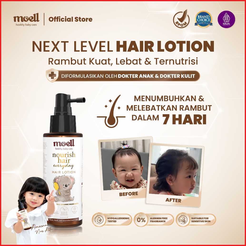 Moell Hair Lotion 100ml Dengan Panax Ginseng Kemiri Biotin Menutrisi Rambut Sepanjang Hari - Skincare Untuk Bayi Anak
