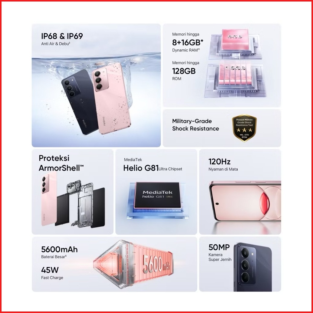 Realme C75x 8gb 16gb 128gb Ip68 69 Anti Debu Air Baterai 5600mah 45w Fast Charge