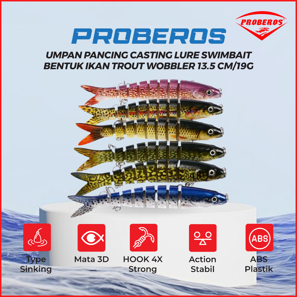Proberos Hs014 Umpan Pancing Casting Lure Swimbait 13.5cm 19g Sinking Buatan Bentuk Ikan Trout Wobbler Treble Hook 6 Mn1