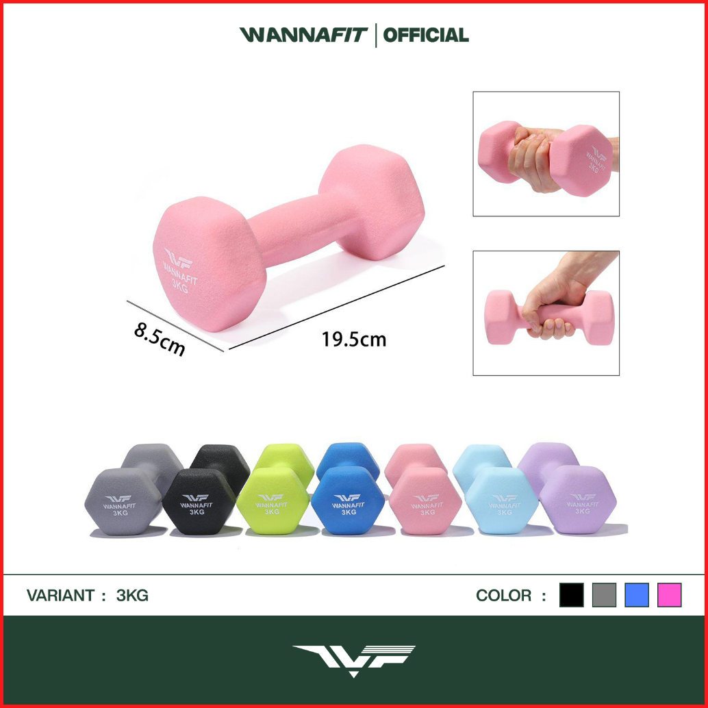Wannafit Dumbbell 3kg Vinyl Neoprene Dumbell Barbell 3 Kg Alat Latihan Beban