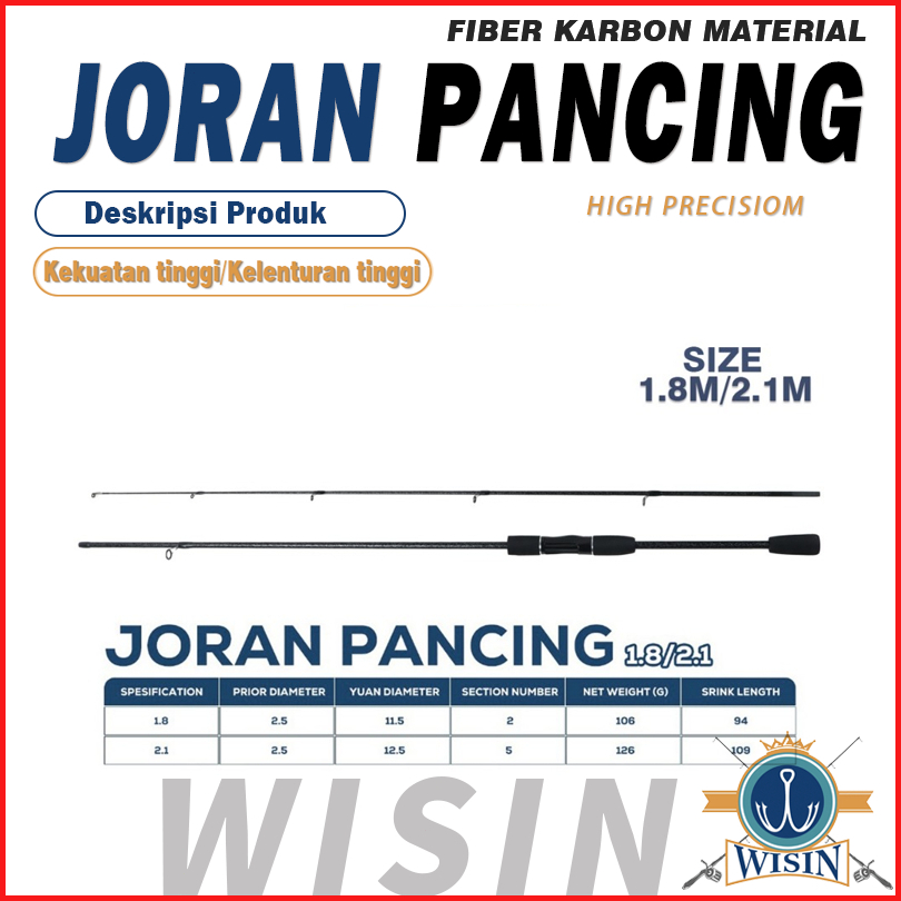 Wisin Joran Pancing 1.8m 2.1m Joran Pancing Pancingan Set Lengkap Joran Tegek Spinning Joran Joran Tegek Peringkat No. 1