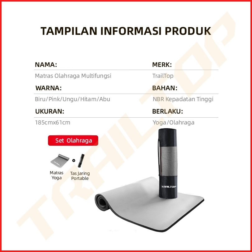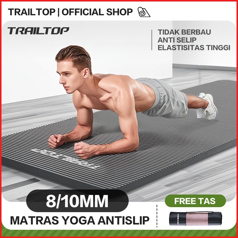 Trailtop Matras Olahraga Tebal 8 10mm Yoga Mat Nbr Matras Yoga Anti Slip 2 Sisi Alat Olahraga Di Rumah