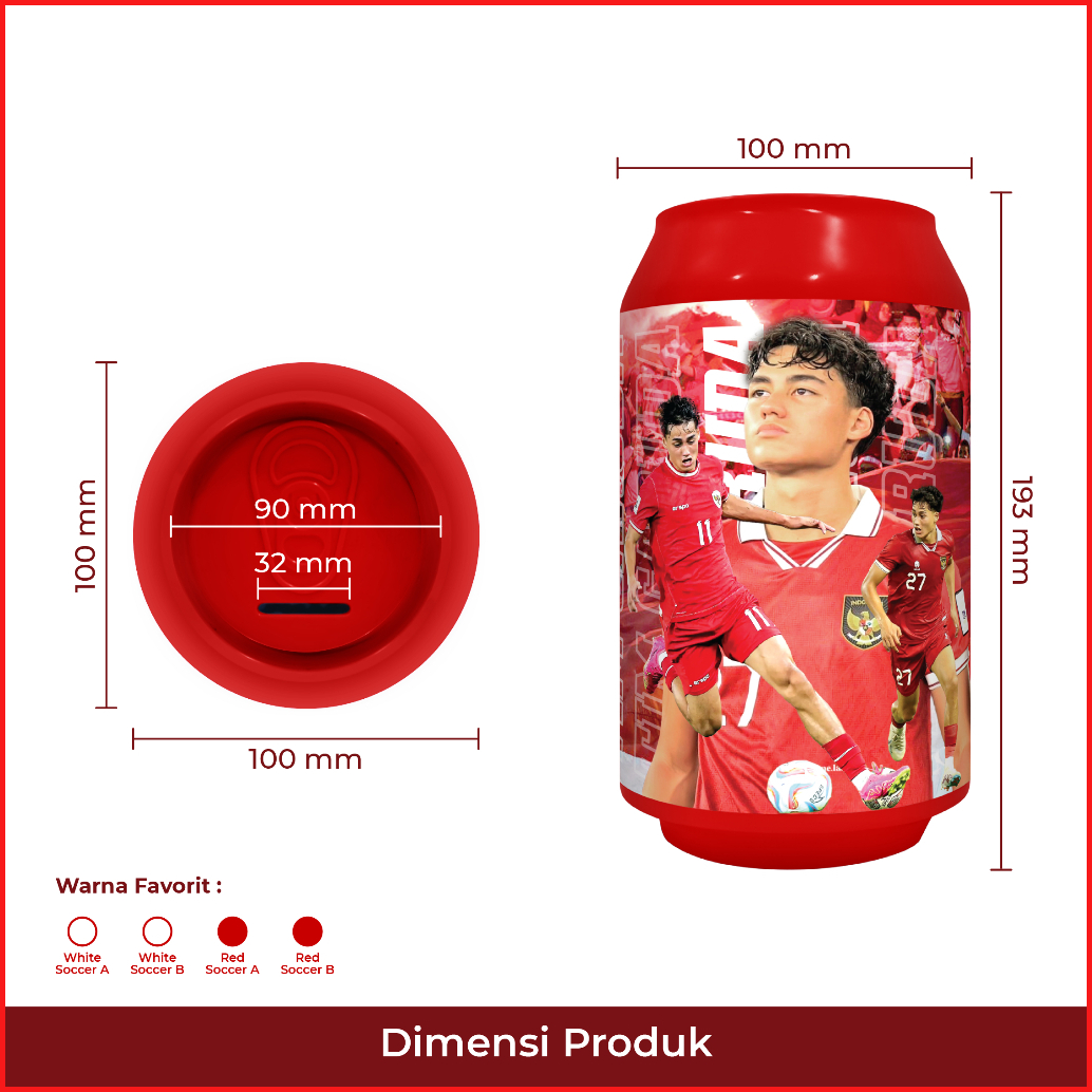 Celengan Sepak Bola Tabungan Anak Bergambar Lucu Souvenir Hadiah Bingkisan Acara Warna Merah Putih