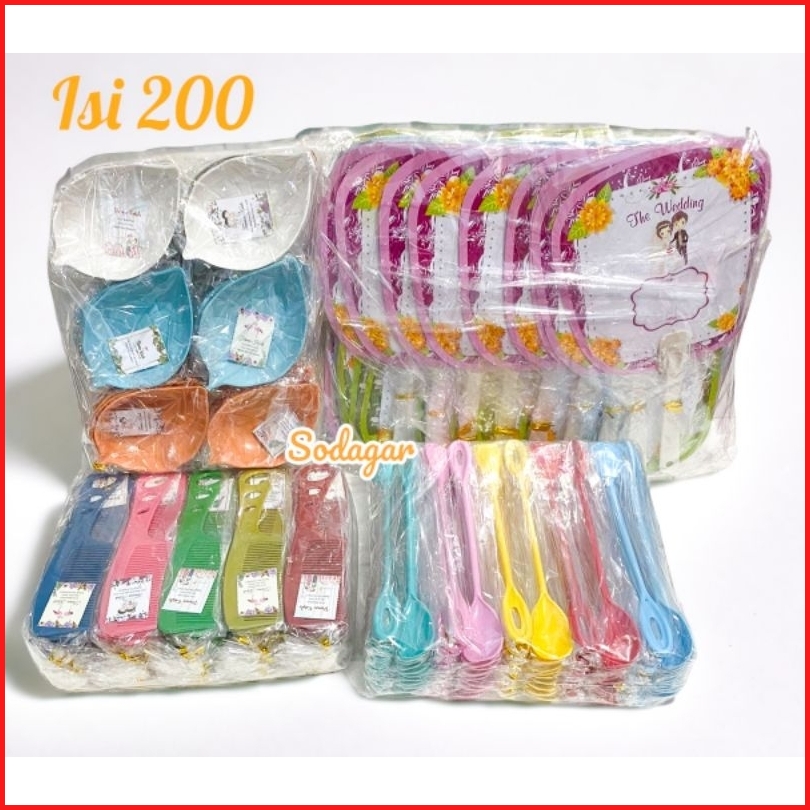 Isi 300 Pcs Paket Hemat Souvenir Pernikahan Paket Hemat Sovenir Kipas Wedding Souvenir Sisir Sendok Mangkok Daun