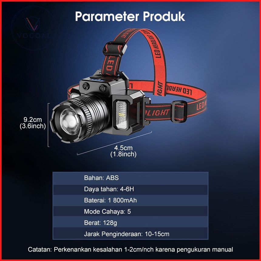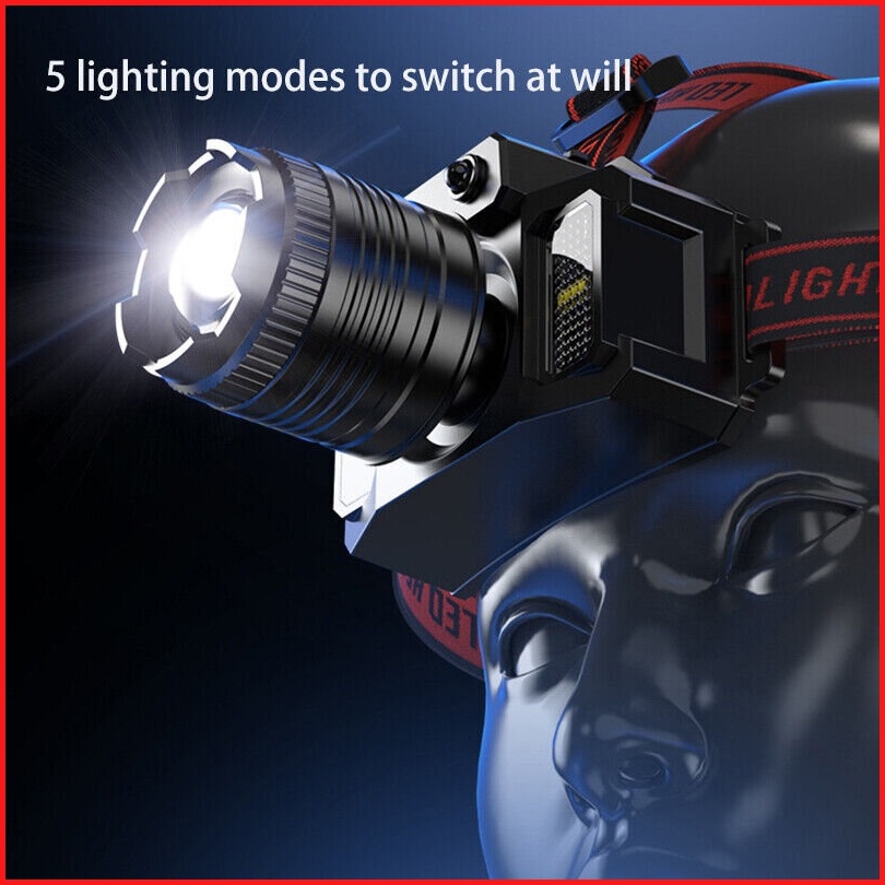 Headlamp Senter Kepala Led Induksi Sensor Gerak Glare T8 Zoom Rotating Lampu Kepala Led Super Terang 5000 Lumen Dengan S