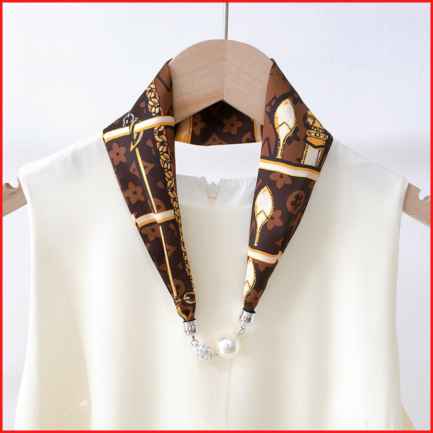 Syal Sutra Magnetic Button Scarf Necklace Syal Silk Syal Leher Syal Scraf Fashion Aksesori Pakaian Wanita Import Quality