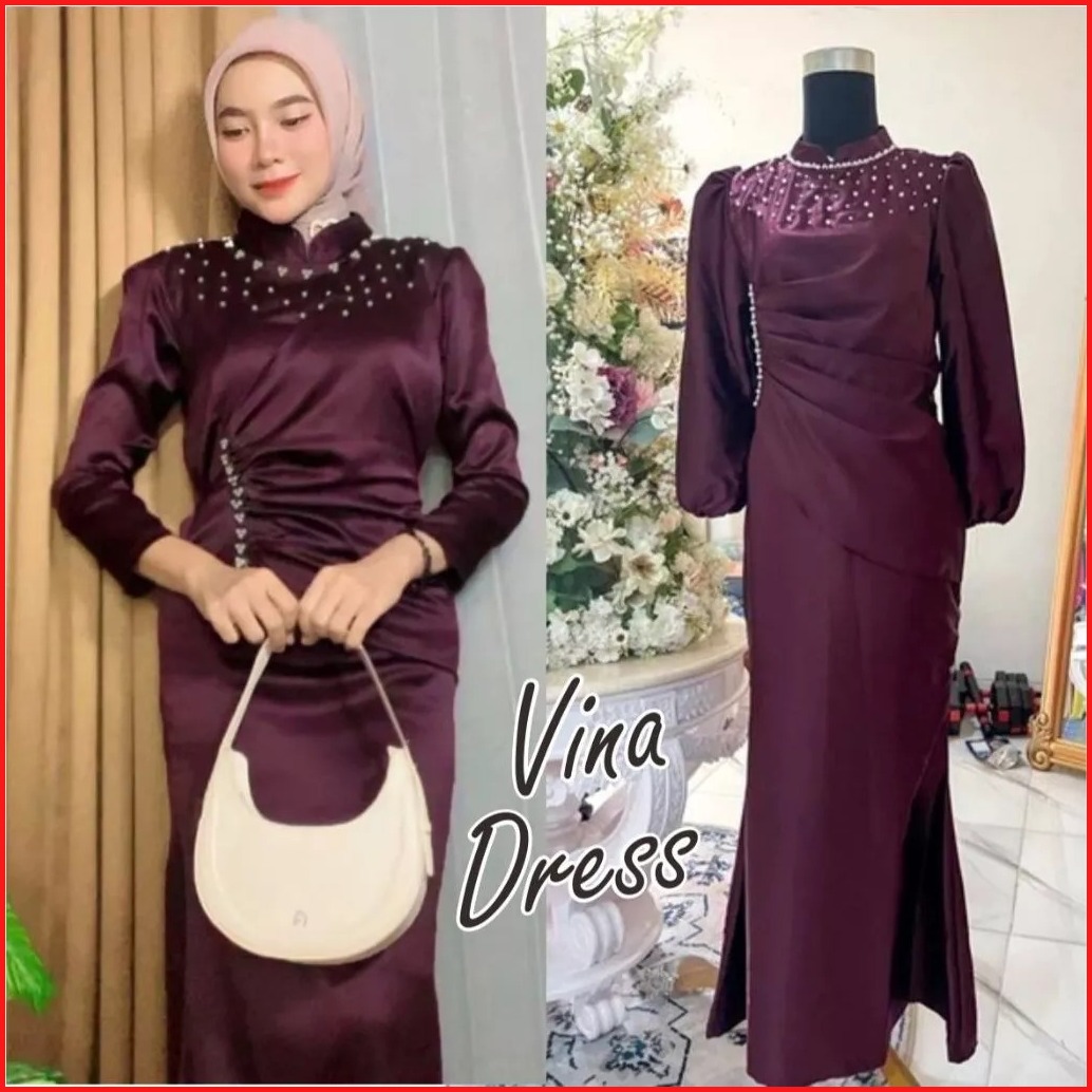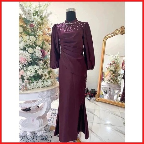 Vina Dress Spesial Burgundy Gaun Pesta Kondangan Viral Duyung Baju Wanita Kekinian Bridesmaid