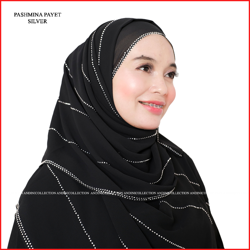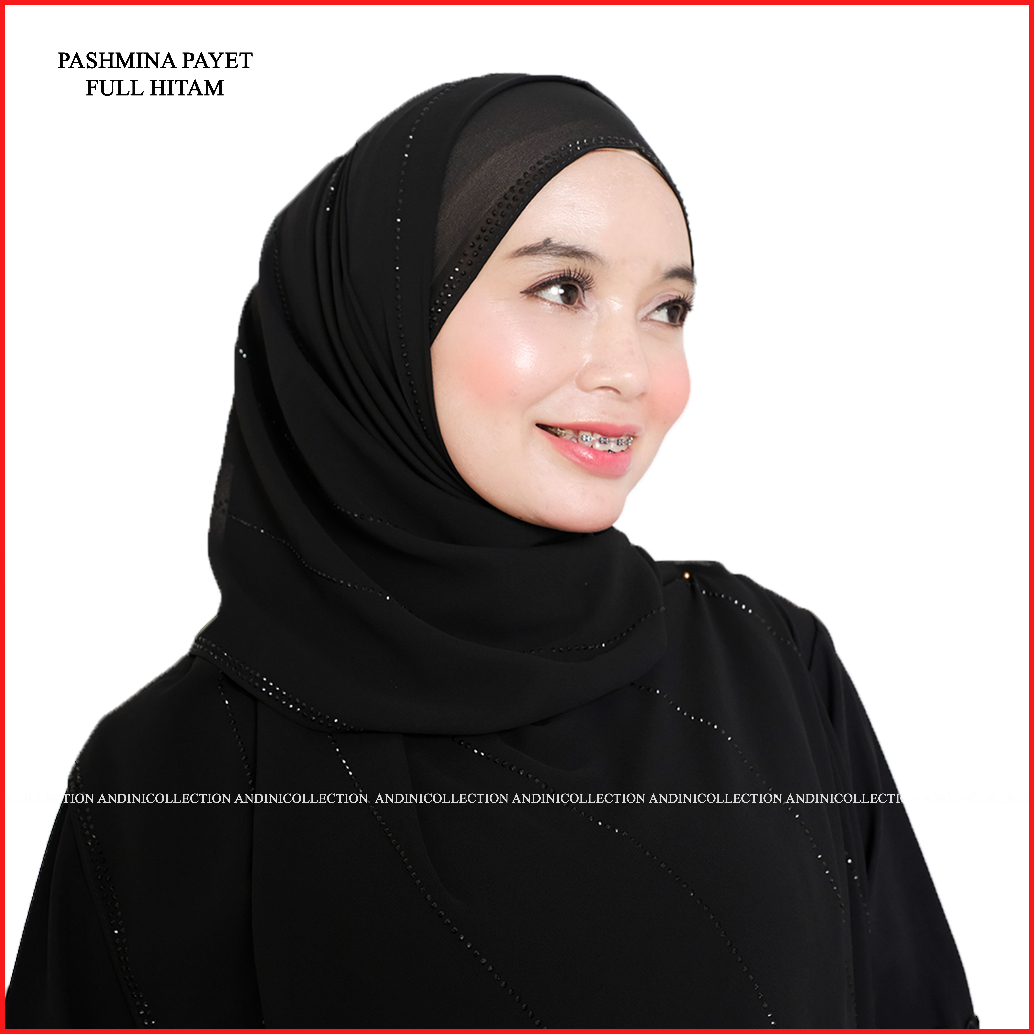 Andinicollection Hijab Phasmina Hitam Payet Swarosky