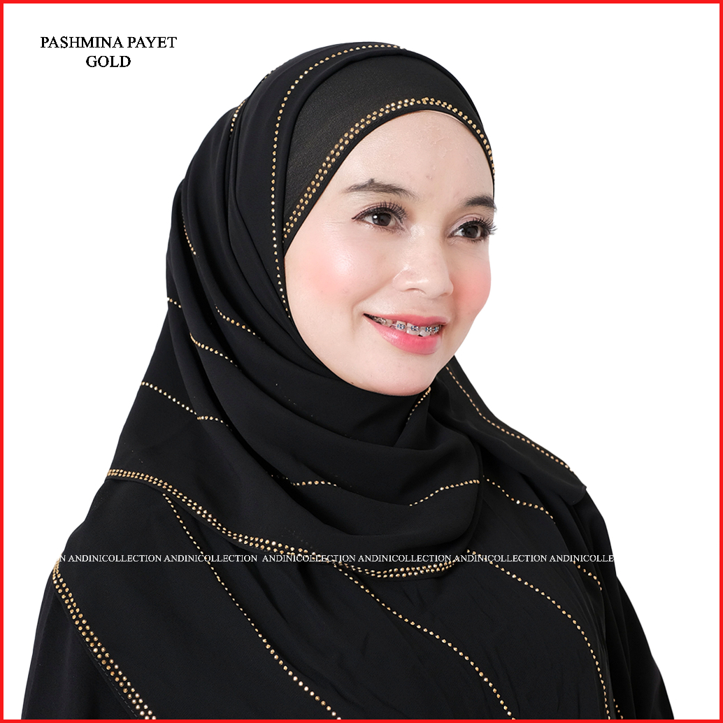 Pasmina Hitam Gold, Pasmina Full Hitam, Pasmina Hitam Silver, Pasmina Hitam
