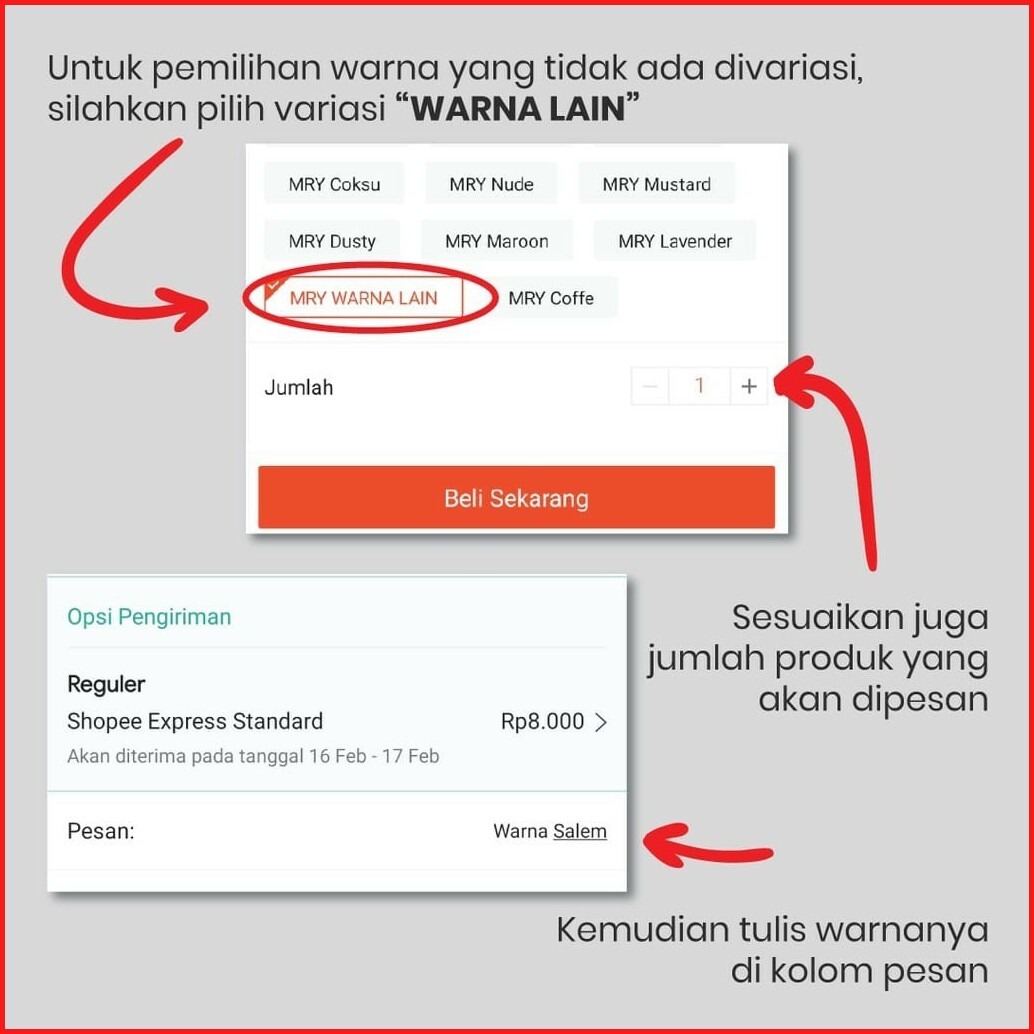 ARMY TNI, BOTOL, PEMDA PNS, MOCCA, Mustard, NAVI, SAGE GREEN, CREAM, COKSU, SILVER, PUTIH TULANG, WARDAH, DUSTY/SALEM, GREY ABU TUA, Lavender, FANTA, MARUN, MERAH CABE, WARNA LAIN, Hitam, GOLD TKD, Lime, UNGU MUDA LILAC, PUTIH BERSIH, BIREL, Hansip, Ungu Tua