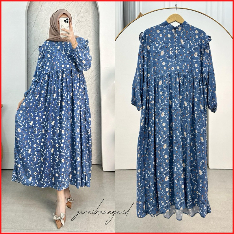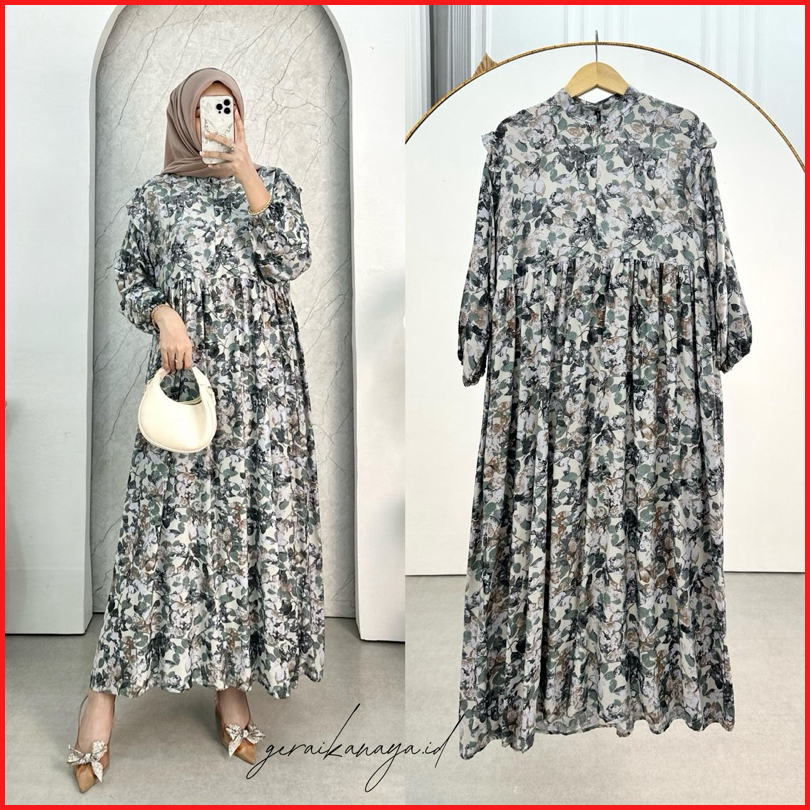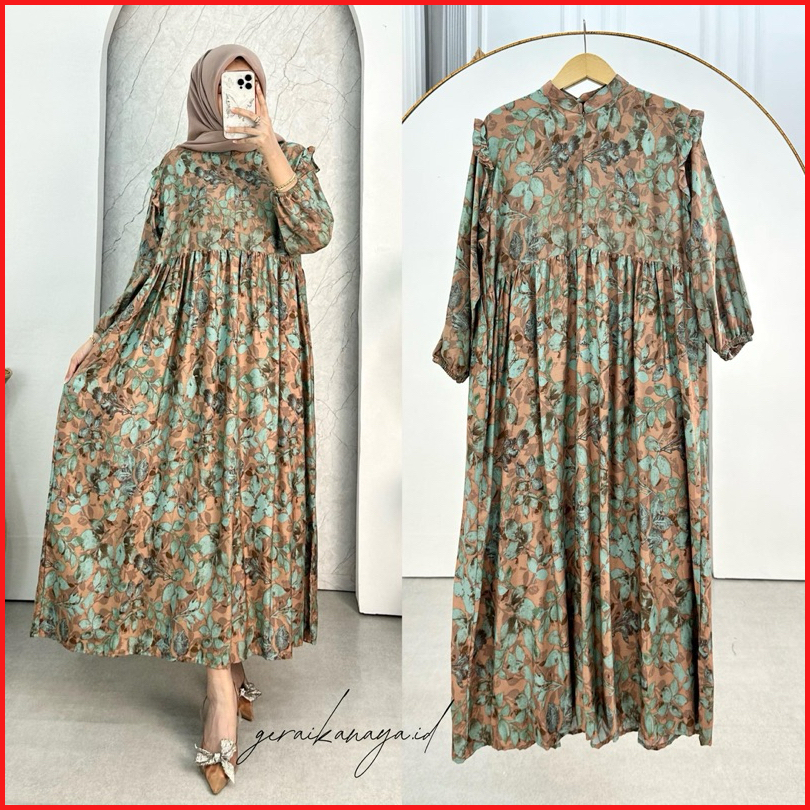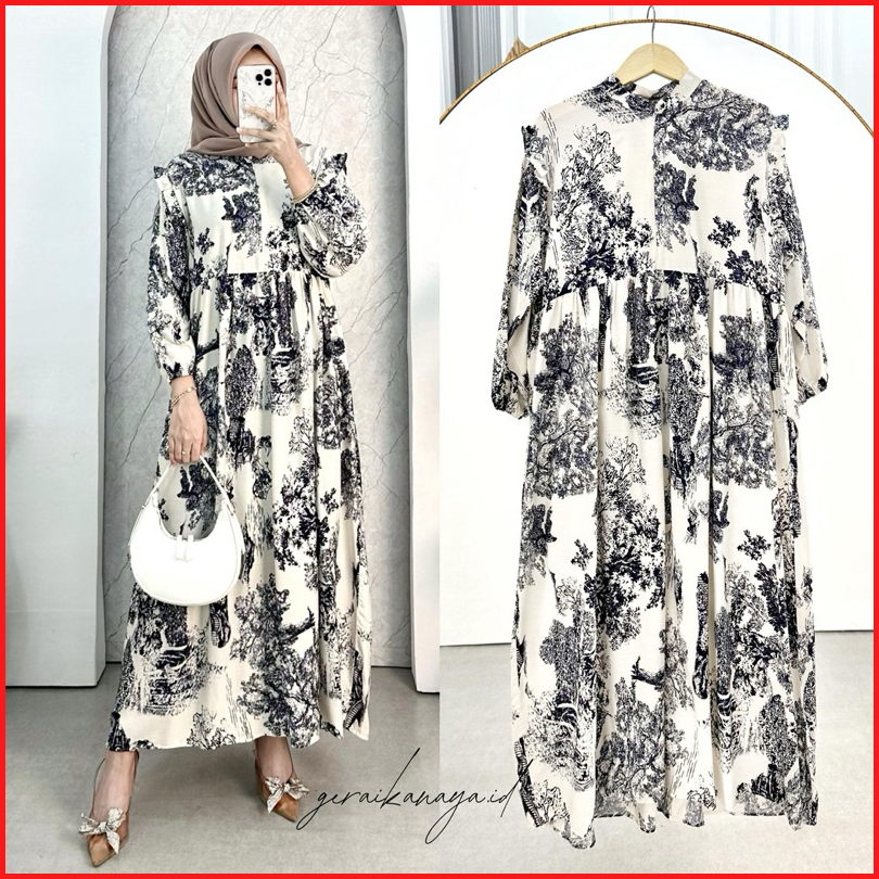Laura Dress By Geraikanaya.id Busui Friendly Gamis Wanita Motif Kain Rayon Diamond Elegan