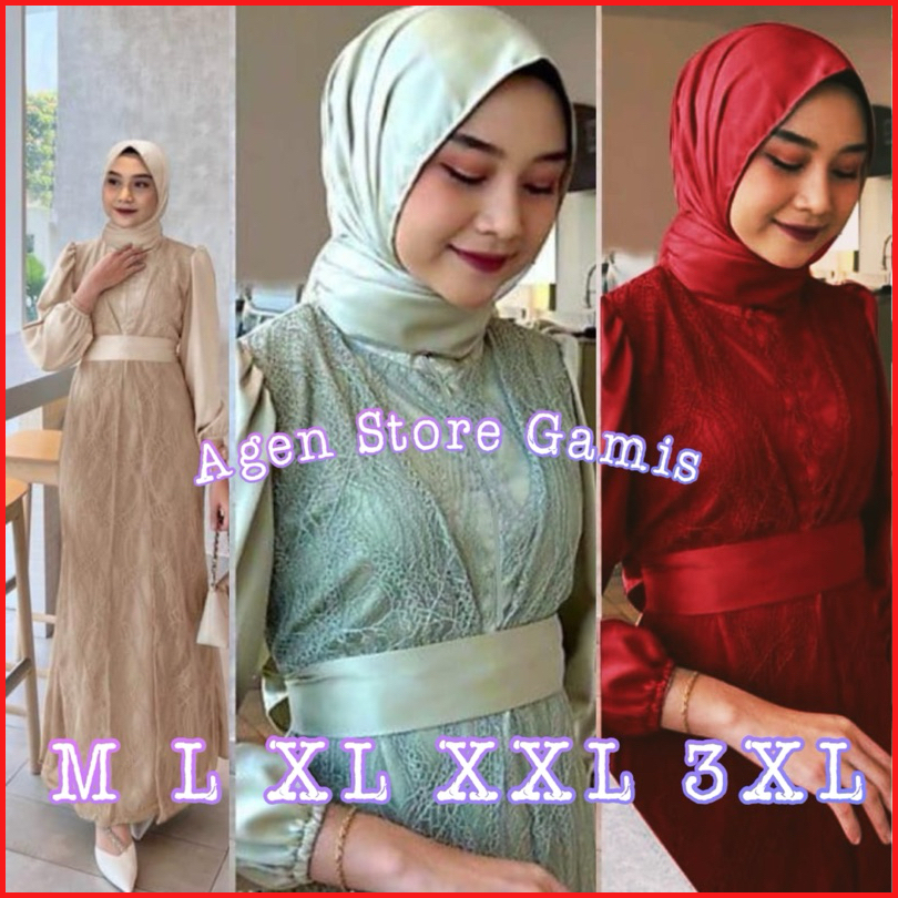 Super Murah Realpict Alika Gamis Brukat Mewah Dress Maxi Muslimah Kekinian Baju Fashion Remaja Dewasa Wanita Pesta Serag