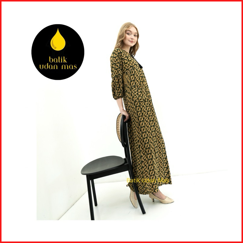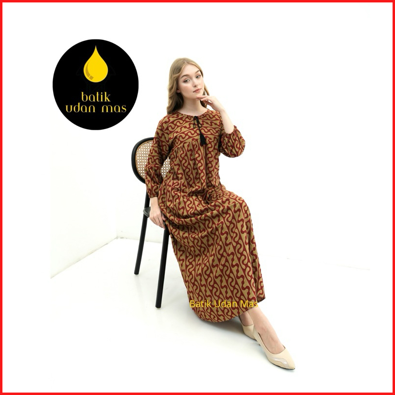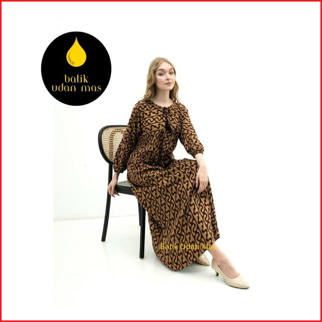 Batik Udan Mas-dress Valeria Bahan Rayon Premium Gamis Valeria Kekinian Dress Jumbo Oversize Midi-nancy